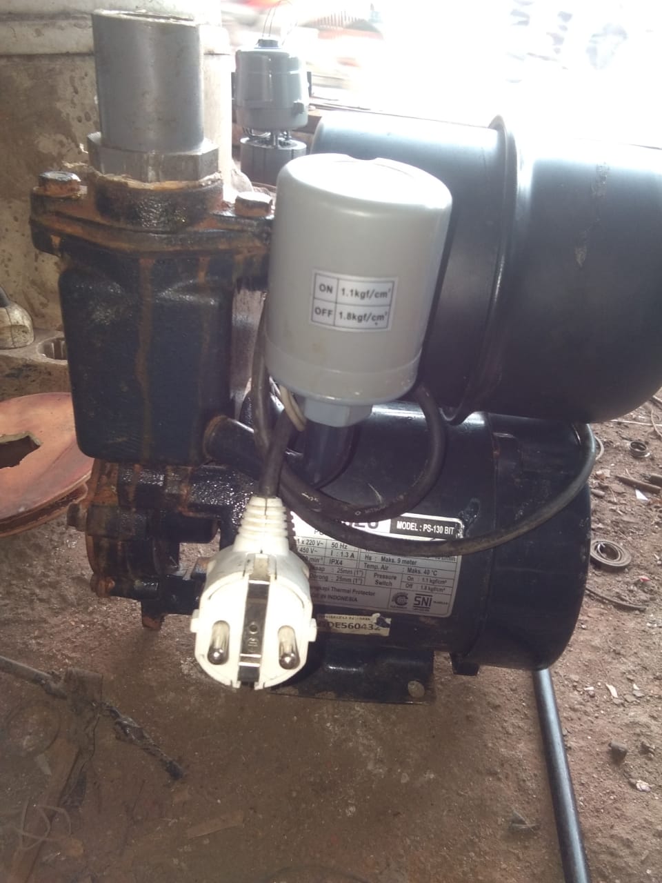 27/11/19. Pompa air Sanyo PH 130 tutup dop keropos ganti baru, tutup slang samping keropos di lem, seal bocor di ganti baru.